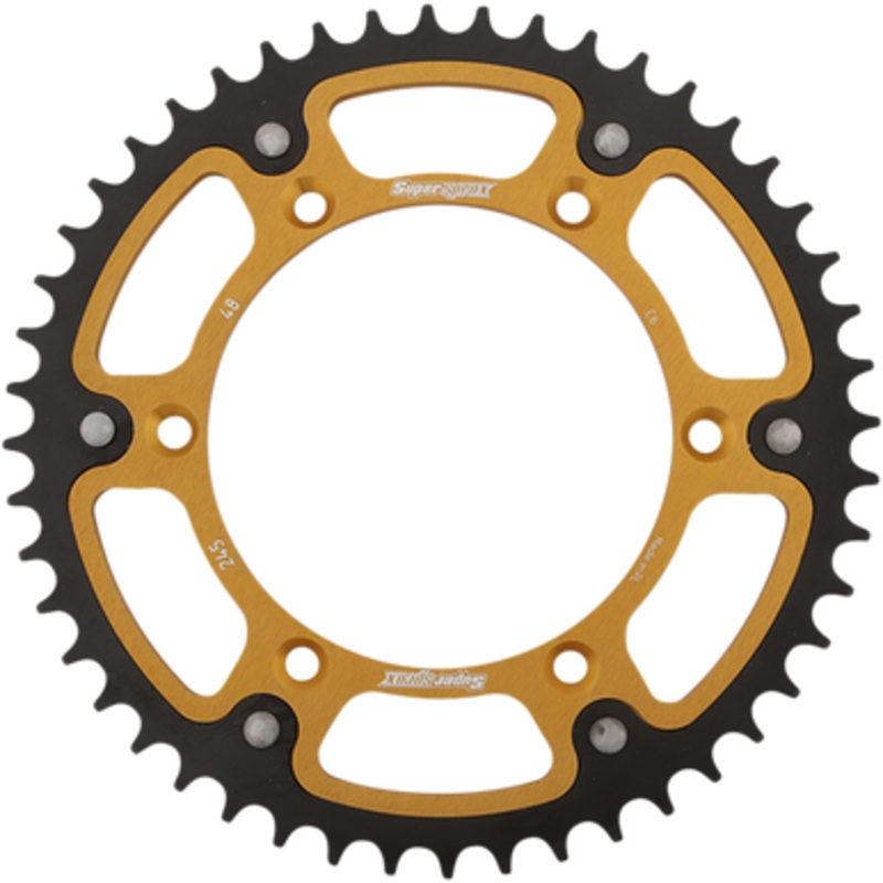 Description SUPERSPROX Stealth Rear Sprocket 48-Tooth Gold Yamaha RST-245-48-GLDSupersprox-Stealth gives you longer system life without compromising weight, Steel teeth last 4 times longer than aluminum, Pound-for-pound, the strongest sprocket on the marke